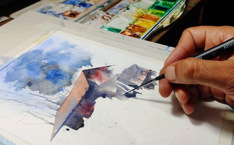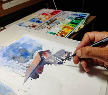 My artistic expression flows through watercolors, acrylics, and mixed media, where abstraction and symbolism create a dialogue between the inner world and the outer reality.