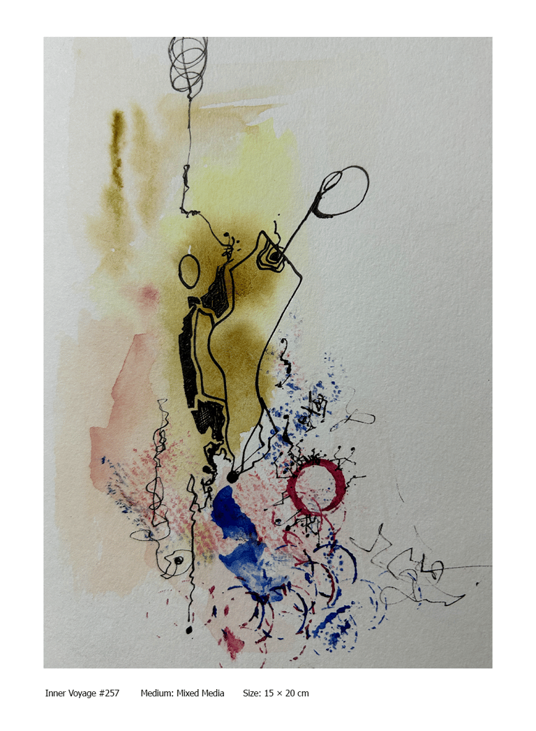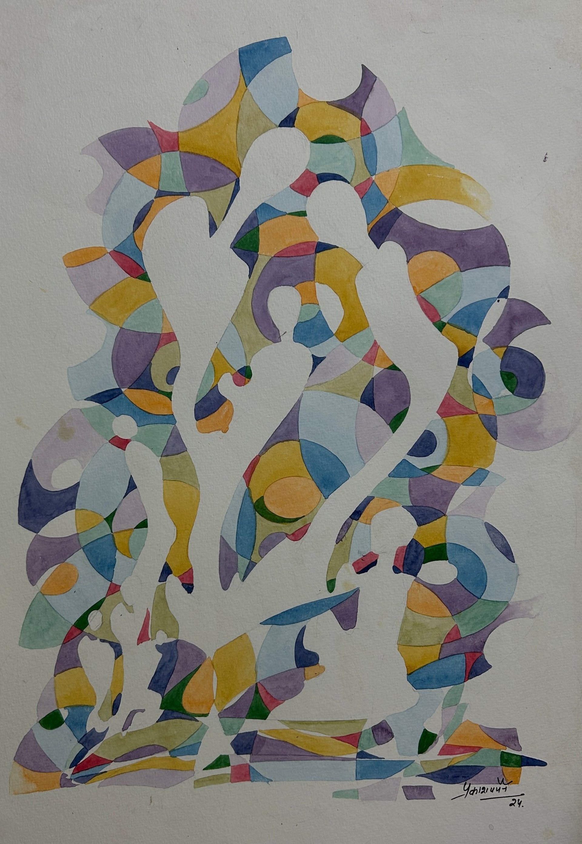 This series is a meditative exploration of the inner landscapes of human existence. Through free-flowing lines, spirals, and translucent washes of color, each painting becomes a visual metaphor for consciousness rising, thoughts unfolding, and energies seeking harmony. The recurring symbols of the eye, spirals, and blooming forms suggest self-reflection, cycles of life, and the flowering of awareness into cosmic dimensions.